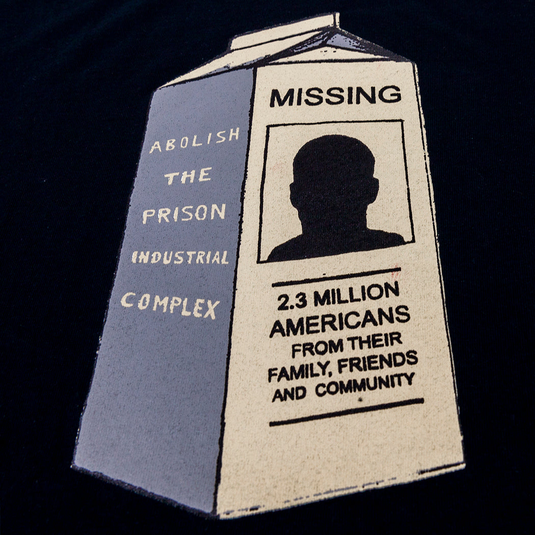 This image was originally designed and printed for the Justseeds Artists’ Cooperative portfolio project Voices from Outside. The image asks us to pay attention to the staggering number of people locked up in the US (2.3 million when the image was designed in 2008) and its impact on the community. Note that the prison population in 2019 remains astronomically high at 2.23 million. The portfolio was created for the prison abolitionist organization Critical Resistance and their ten-year anniversary conference in Oakland, California that took place on September 26-28, 2008. The majority of the portfolios were then donated to Critical Resistance and 23 other groups who are organizing against the prison-industrial complex.