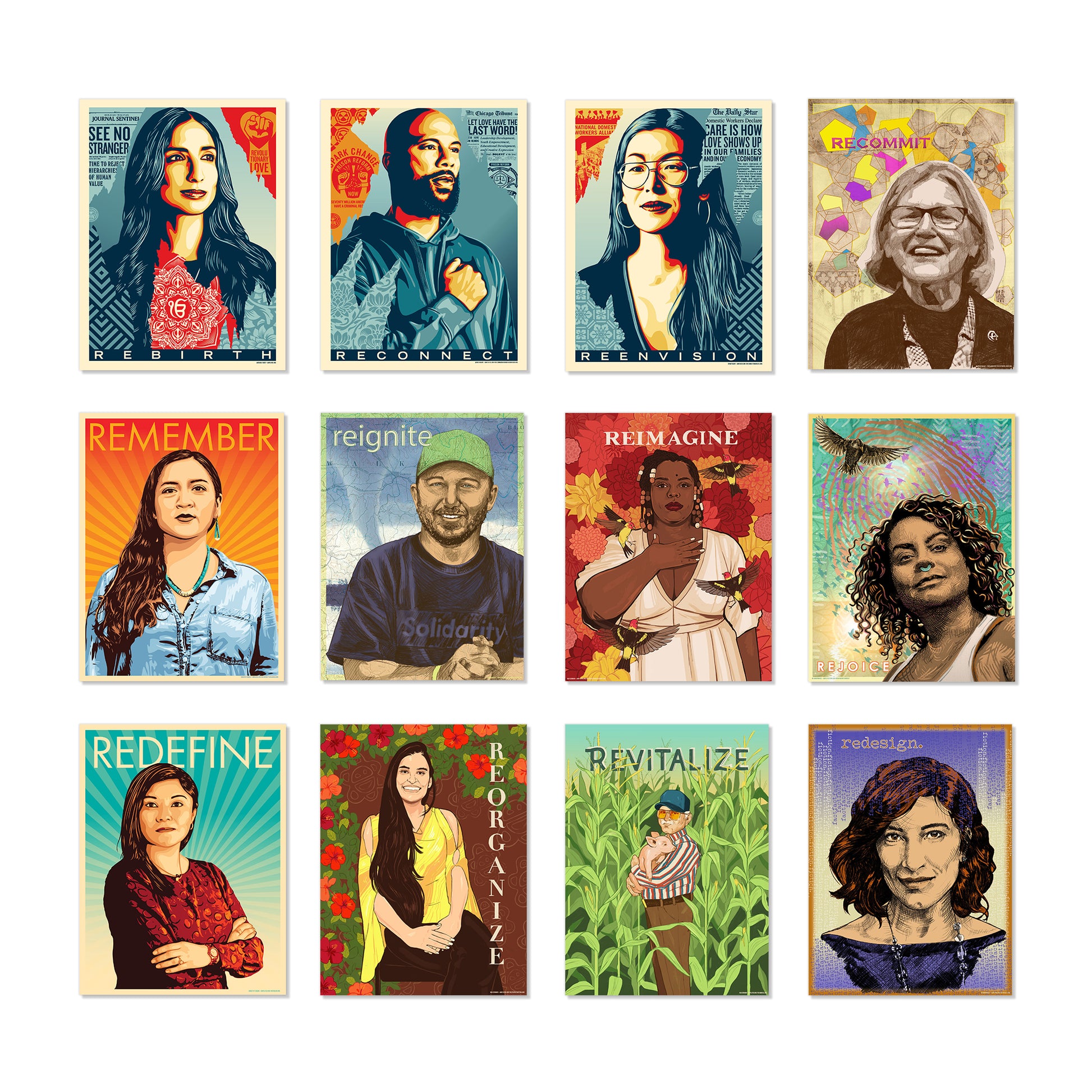 All 12 18"x24" (unsigned) AR activated posters in an open edition from the REFRAME series featuring each of the leaders. Featuring the work of Shepard Fairey, Ernesto Yerena, Noa Denmon and LMNOPI will be sent to anyone donating $60 to help us move activism through art.