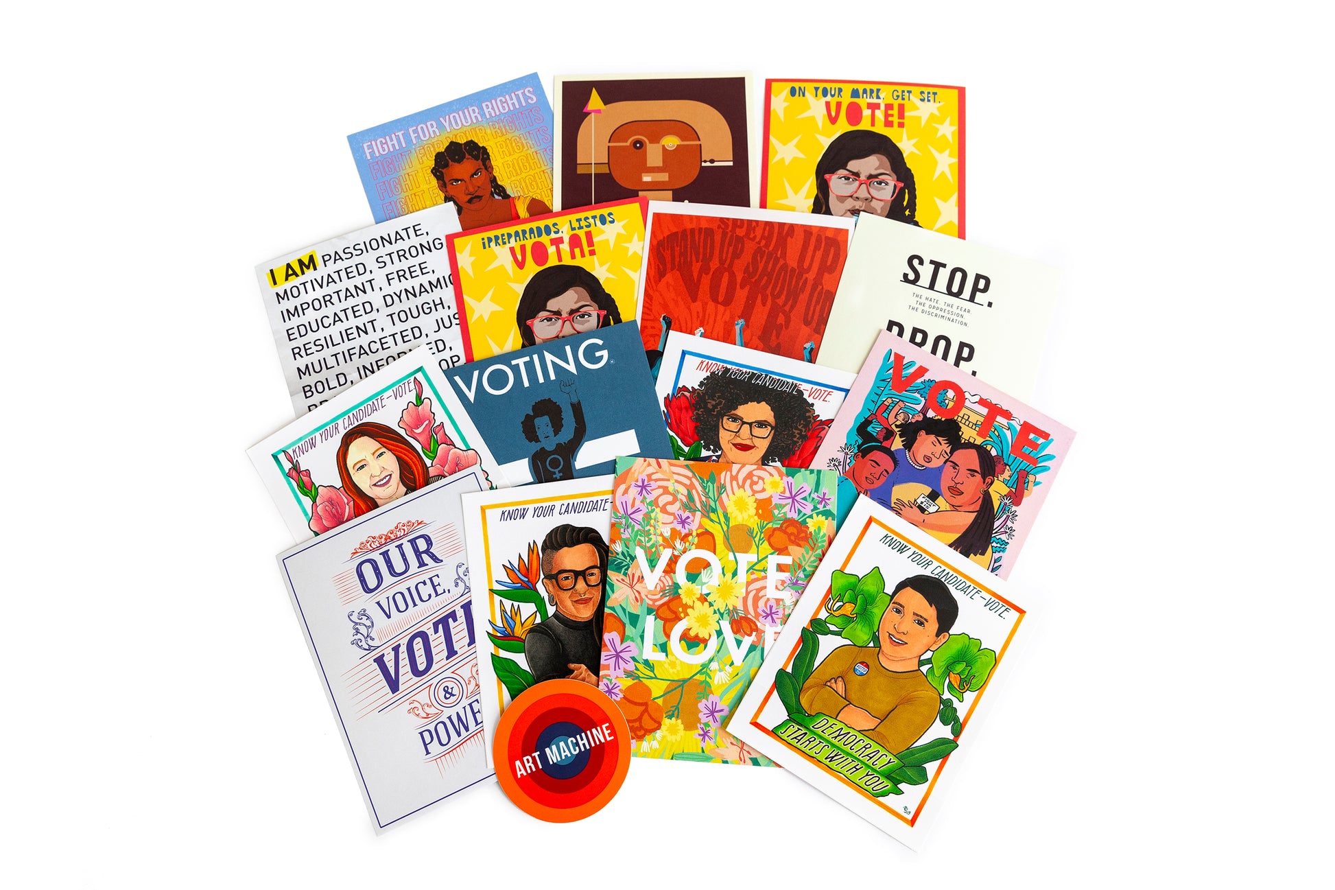 A gift of 15 mixed postcards and stickers from our Power to the Polls campaign in partnership with the Women's March will be sent to anyone donating $10 to help us move activism through art.