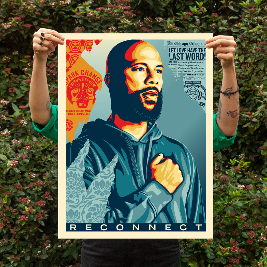 An 18"x24" (SIGNED + NUMBERED EDITION of 450) silkscreen print on thick speckle tone cream paper featuring rapper, actor, and writer Common, by Shepard Fairey will be given to anyone who donates $100 to help us move activism through art.