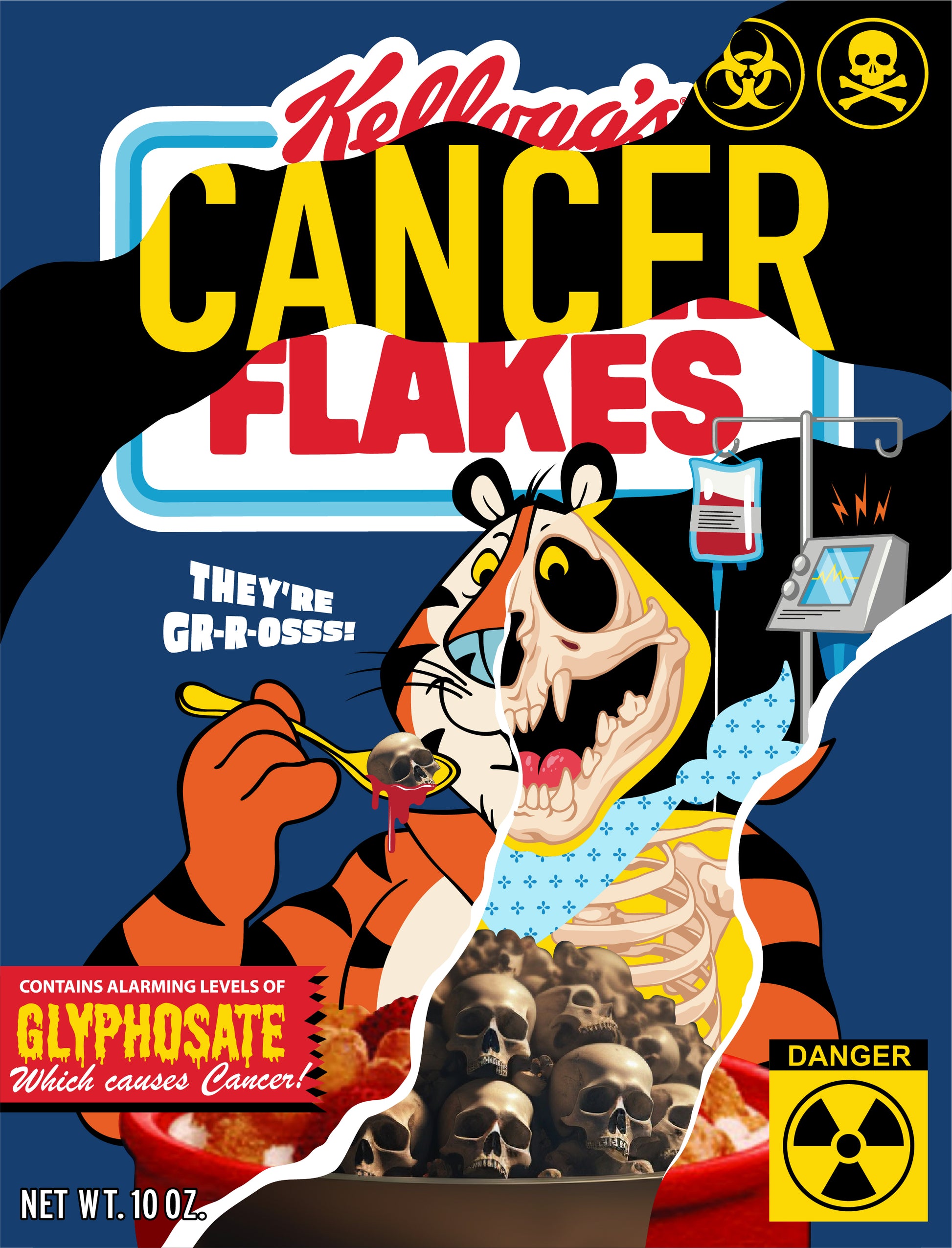 Limited edition 8" x 10" Cancer Flakes cereal box by Tristan Eaton from our UNFK Open Call for Parody Art. Signed edition of 200. AR-activated.